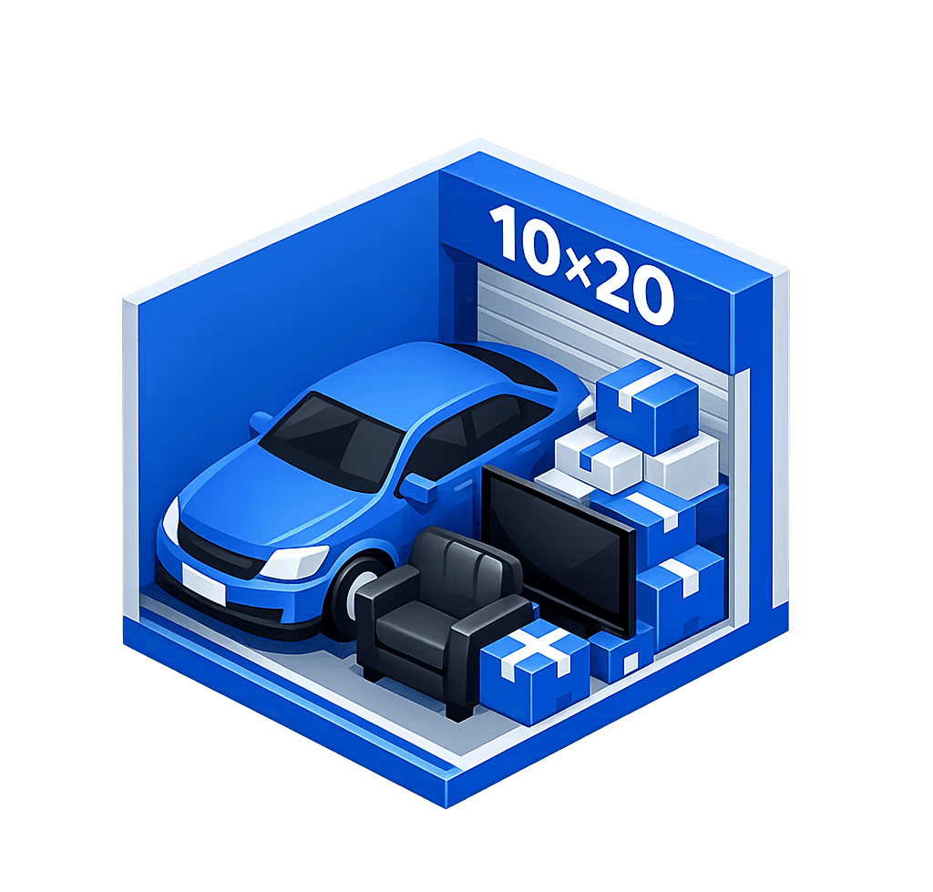 A one to two bedroom apartment for large furniture, appliances, boxes and more. For example, a 10x20'