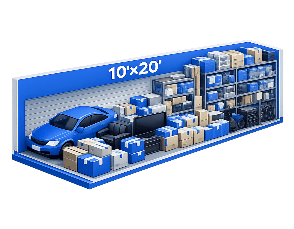 Our small storage units range in size between 5'x5' to 5'x10'. These are ideal for personal items, small furniture, or the items of a single room.